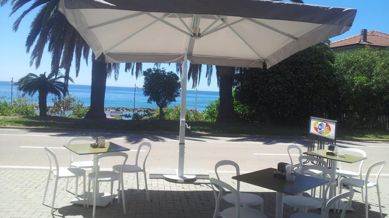 Обои Кафе на набережной в Санто Стефано аль Маре, Италия