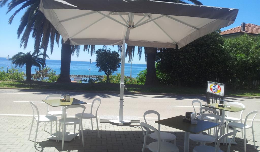 Обои Кафе на набережной в Санто Стефано аль Маре, Италия