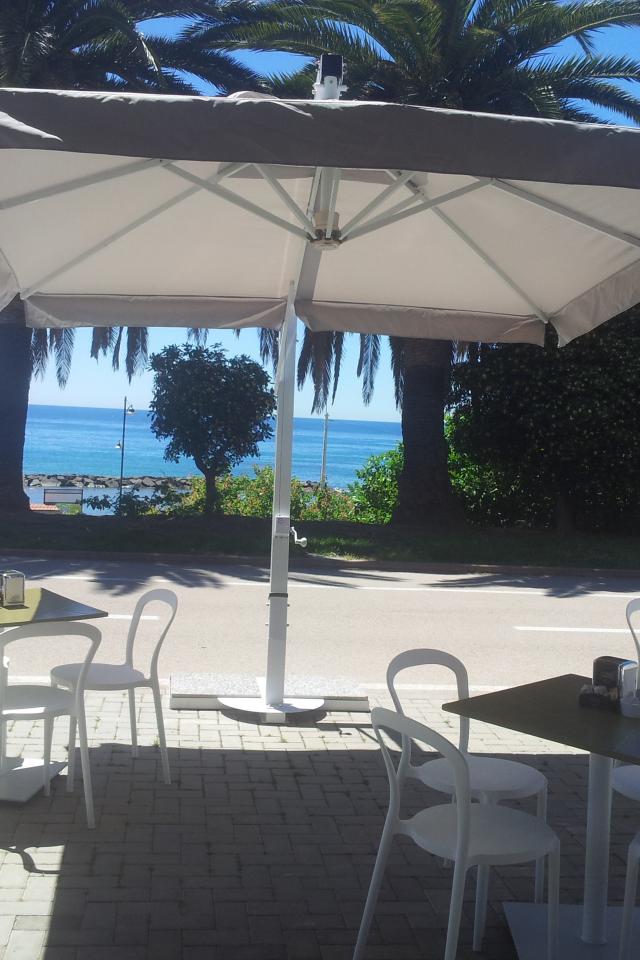 Обои Кафе на набережной в Санто Стефано аль Маре, Италия