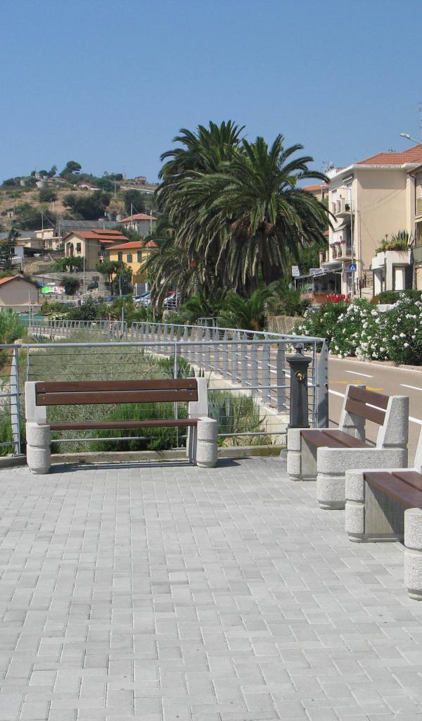 Обои Лавочки на набережной в Санто Стефано аль Маре, Италия