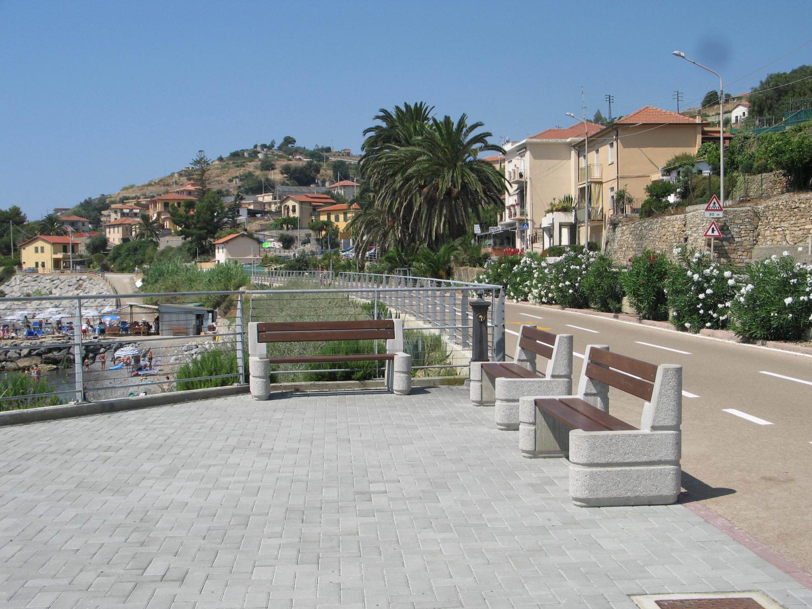Обои Лавочки на набережной в Санто Стефано аль Маре, Италия