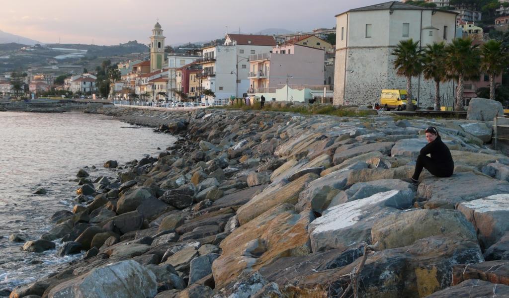 Обои Каменистый берег в Санто Стефано аль Маре, Италия