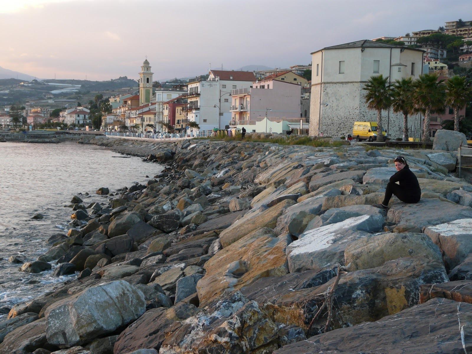 Обои Каменистый берег в Санто Стефано аль Маре, Италия