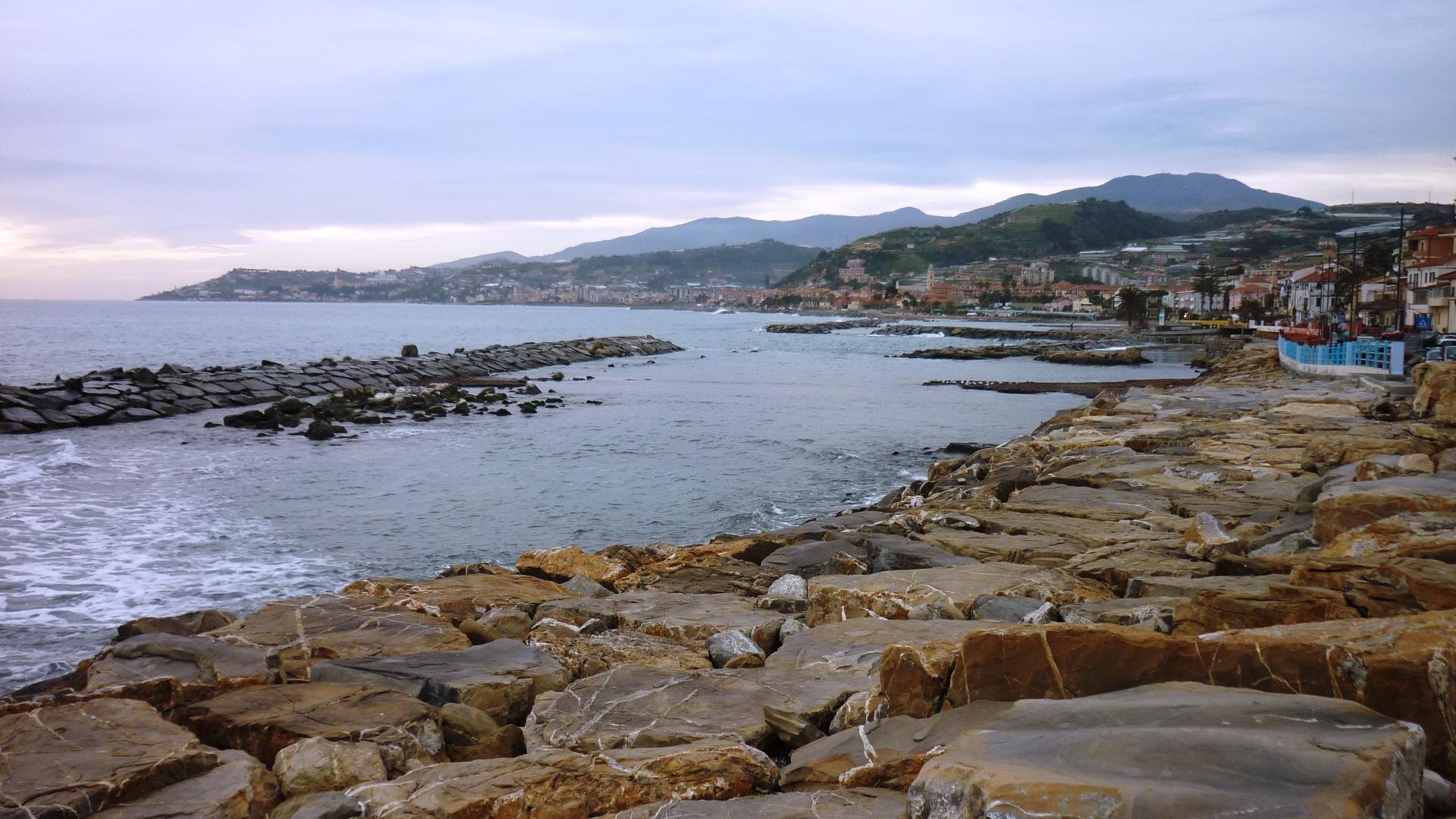 Обои Дома на набережной в Санто Стефано аль Маре, Италия