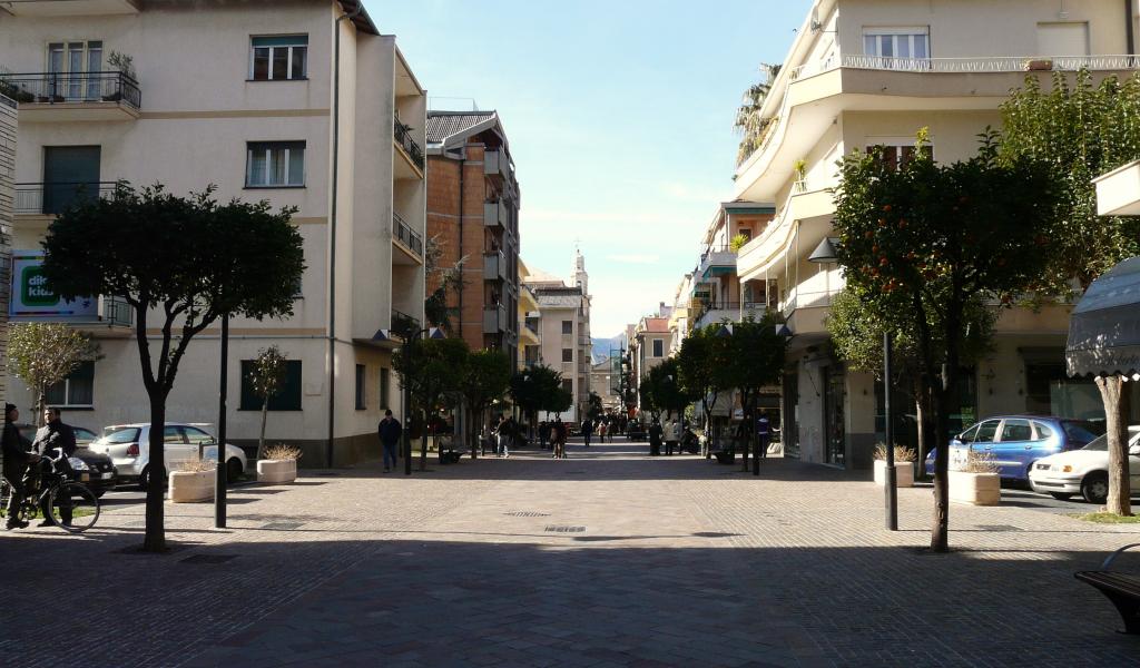Обои Городская улица на курорте в Пьетра Лигуре, Италия