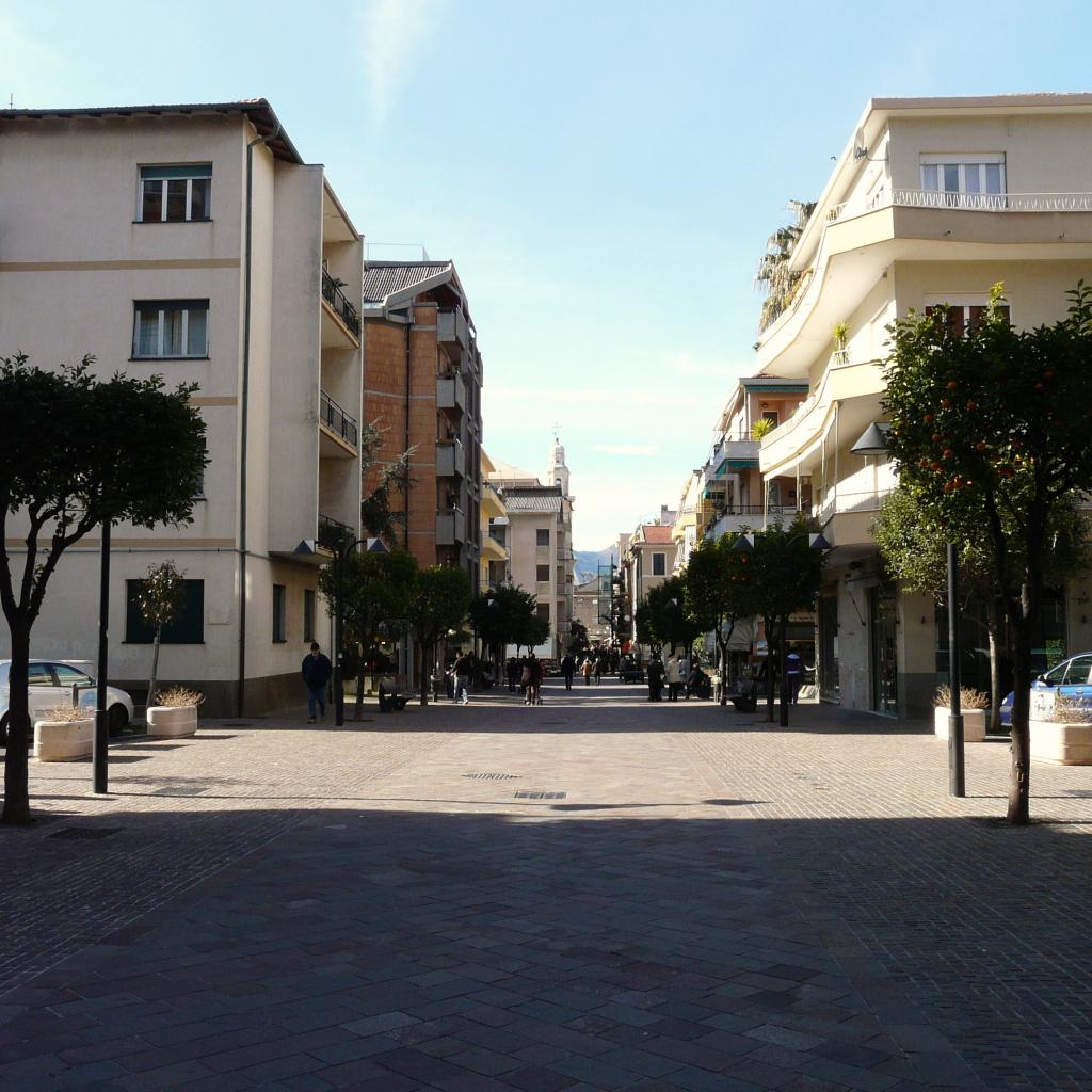 Обои Городская улица на курорте в Пьетра Лигуре, Италия