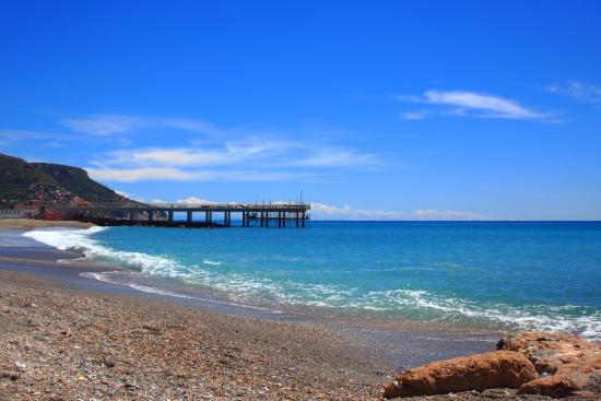 Обои Голубая лагуна на курорте в Пьетра Лигуре, Италия