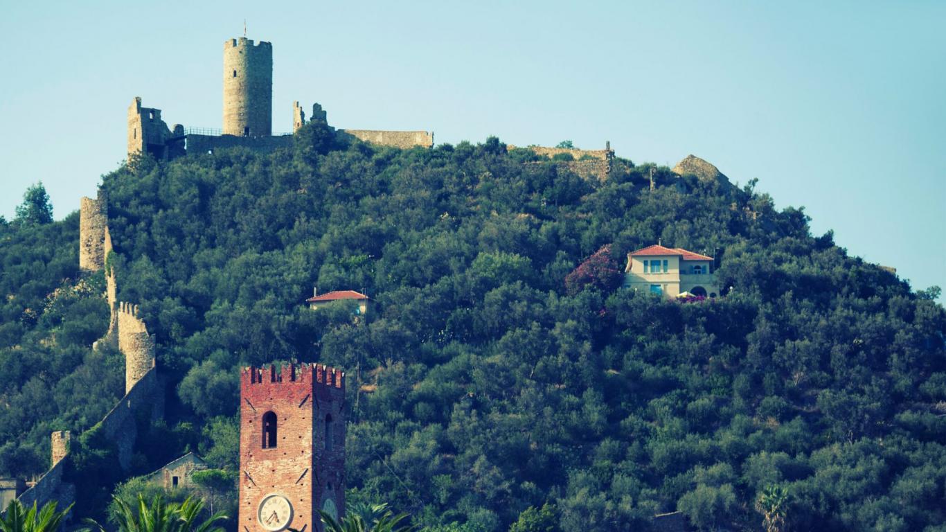 Обои Крепость на горе на курорте Ноли, Италия