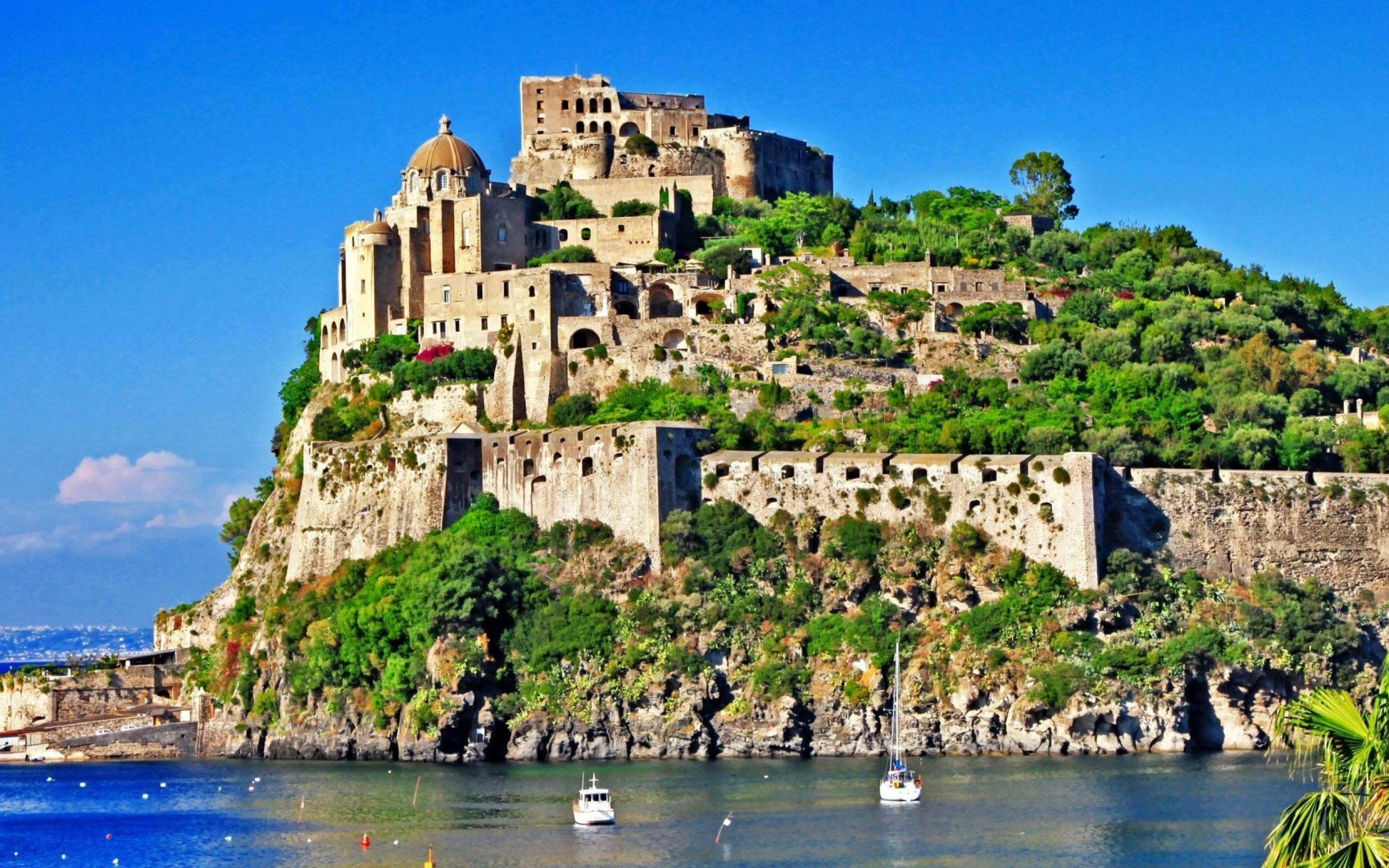 Обои Замок на скале на острове Искья, Италия
