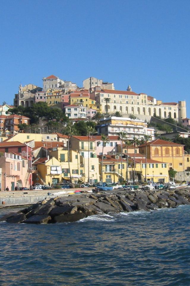 Обои Каменистый берег на курорте Империя, Италия
