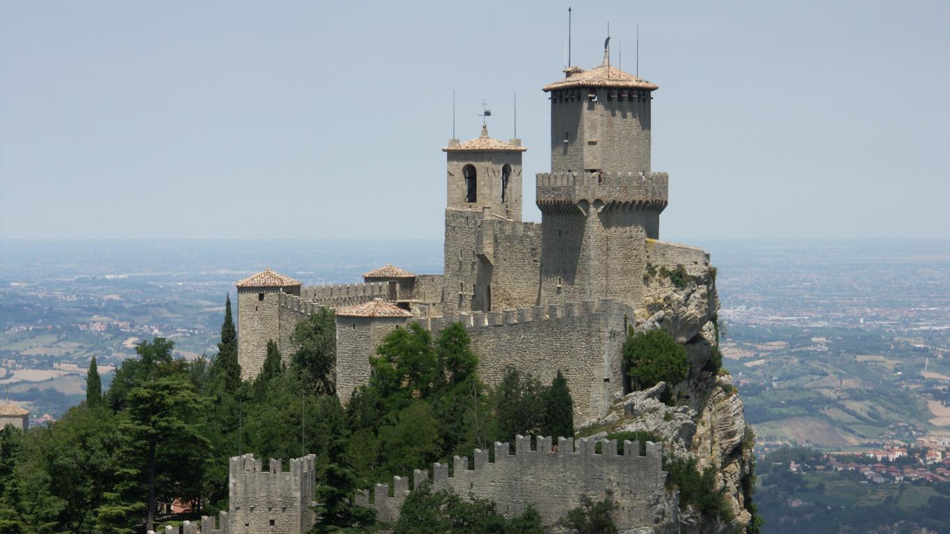 Обои Крепость на вершине горы в Сан Марино, Италия