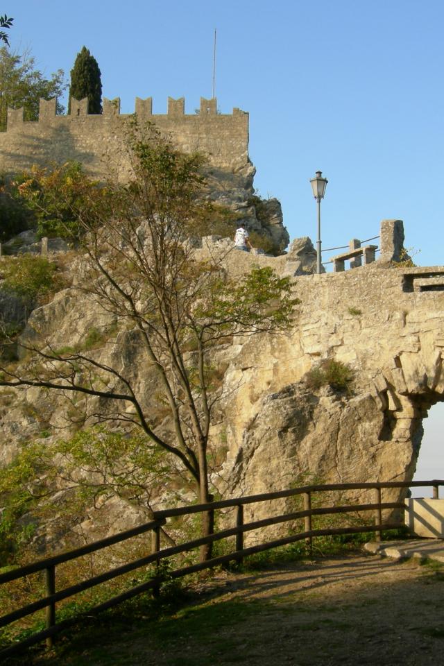Обои Деревья на фоне крепости в Сан Марино, Италия