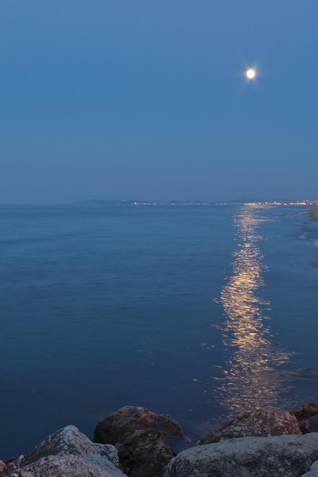 Обои Лунная дорожка на пляже на курорте в Римини, Италия