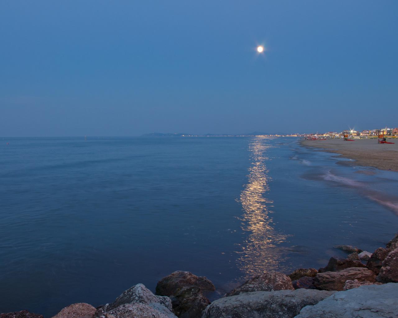 Обои Лунная дорожка на пляже на курорте в Римини, Италия
