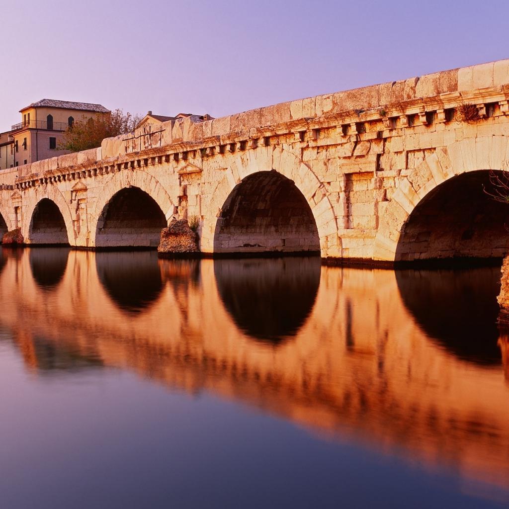 Обои Мост Тиберия на курорте в Римини, Италия