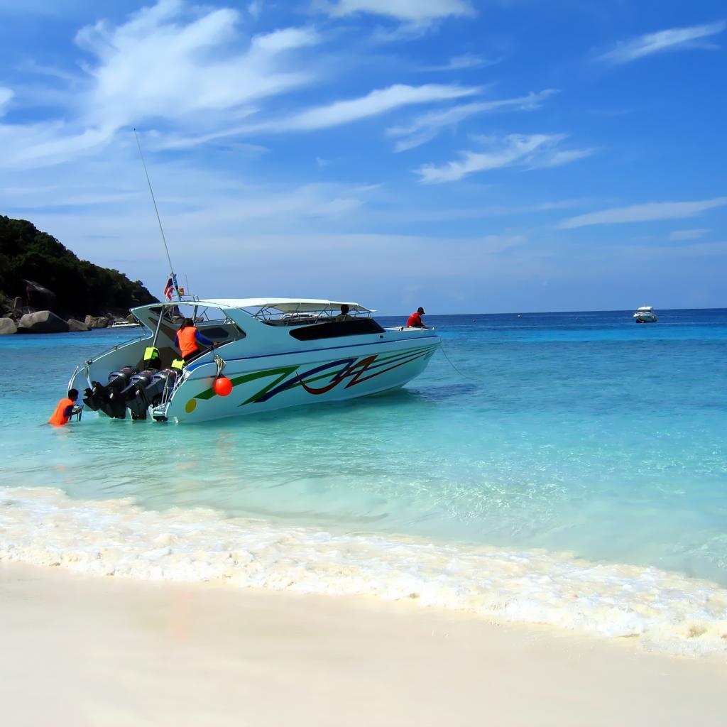 Обои Лодка у берега на курорте в Римини, Италия