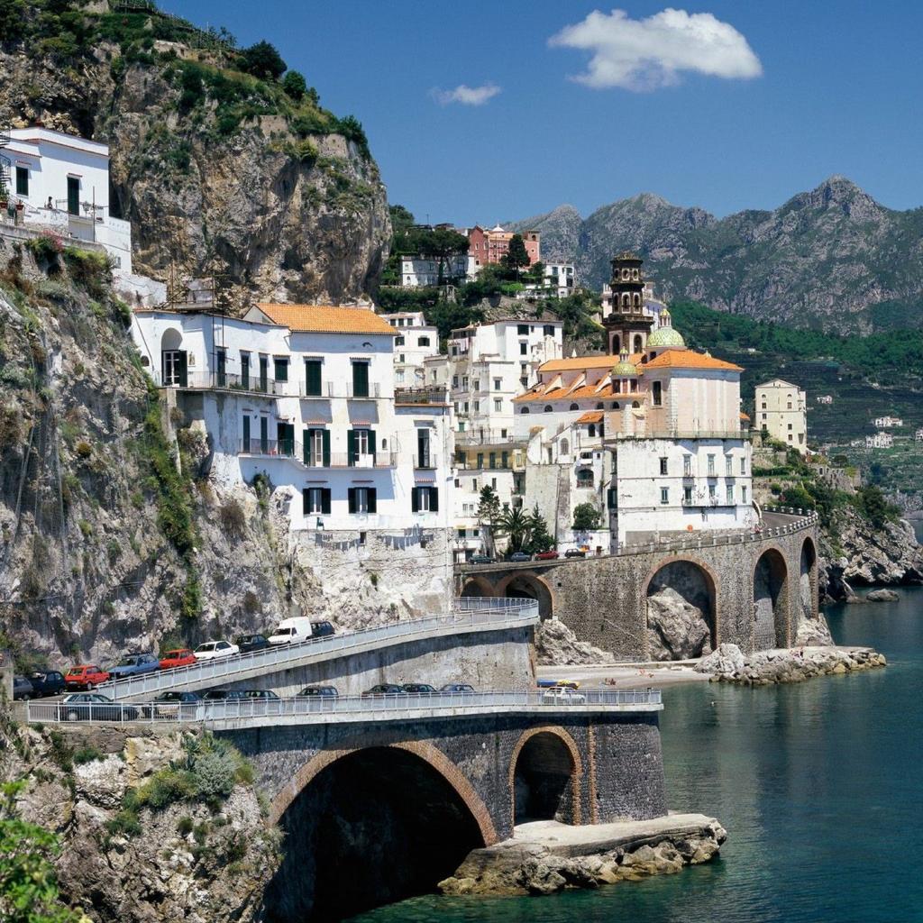Обои Дома у подножия скалы на курорте в Римини, Италия