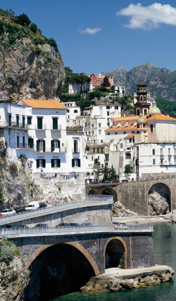 Обои Дома у подножия скалы на курорте в Римини, Италия
