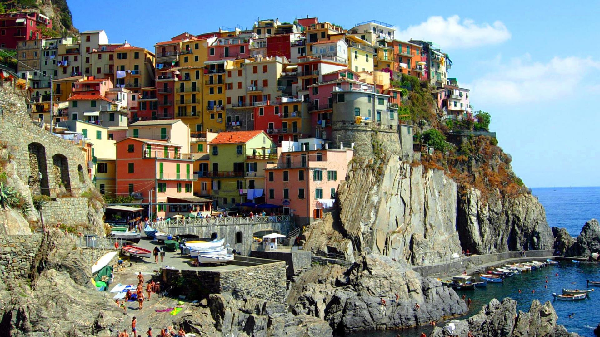 Обои Дома на скале на курорте в Римини, Италия