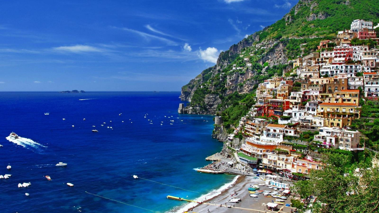 Обои Лодки в заливе на курорте Позитано, Италия