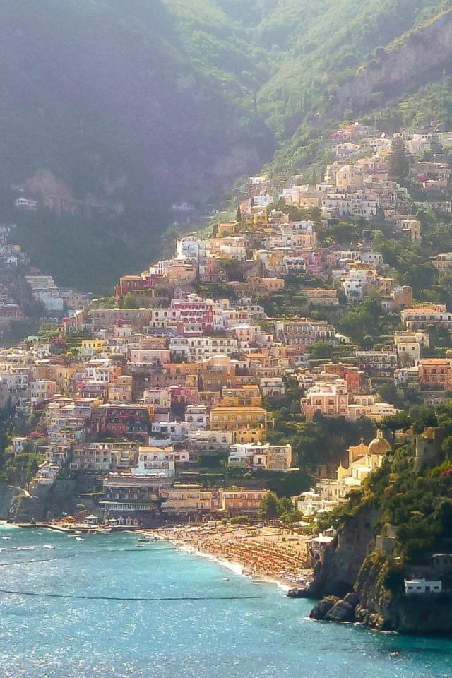 Обои Вид с набережной на город на курорте Позитано, Италия