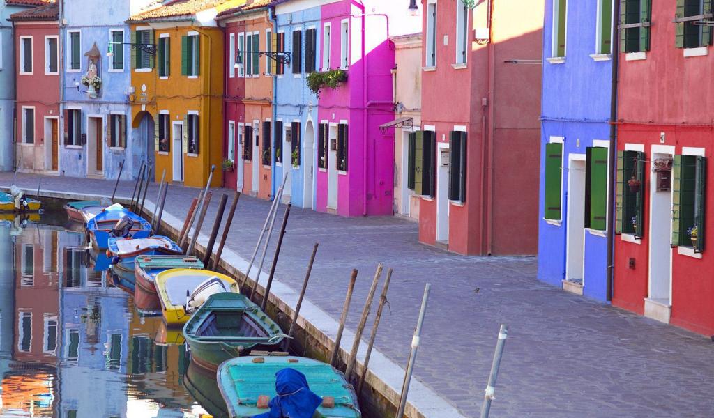 Обои Яркие дома на берегу канала на острове Мурано, Италия