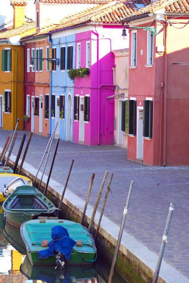 Обои Яркие дома на берегу канала на острове Мурано, Италия