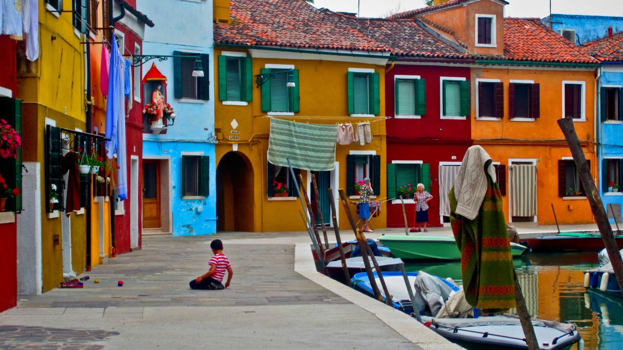 Обои Красочные дома на острове Мурано, Италия