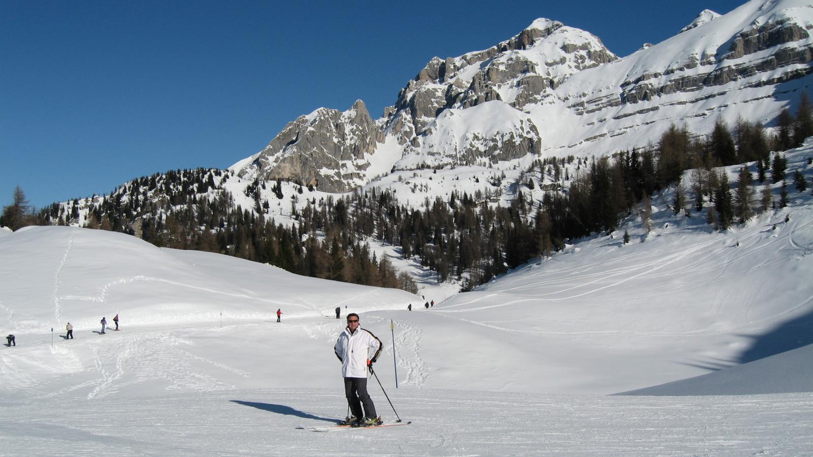 Обои Катание на лыжах на горнолыжном курорте Мадонна ди Кампильо, Италия