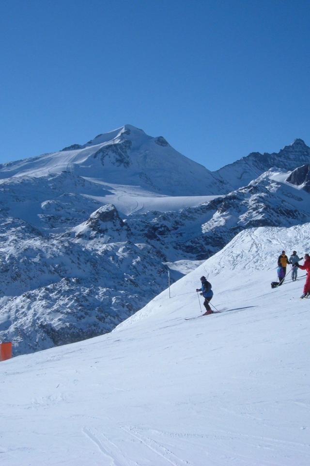 Обои Спуск на лыжах на горнолыжном курорте Кортина д`Ампеццо, Италия