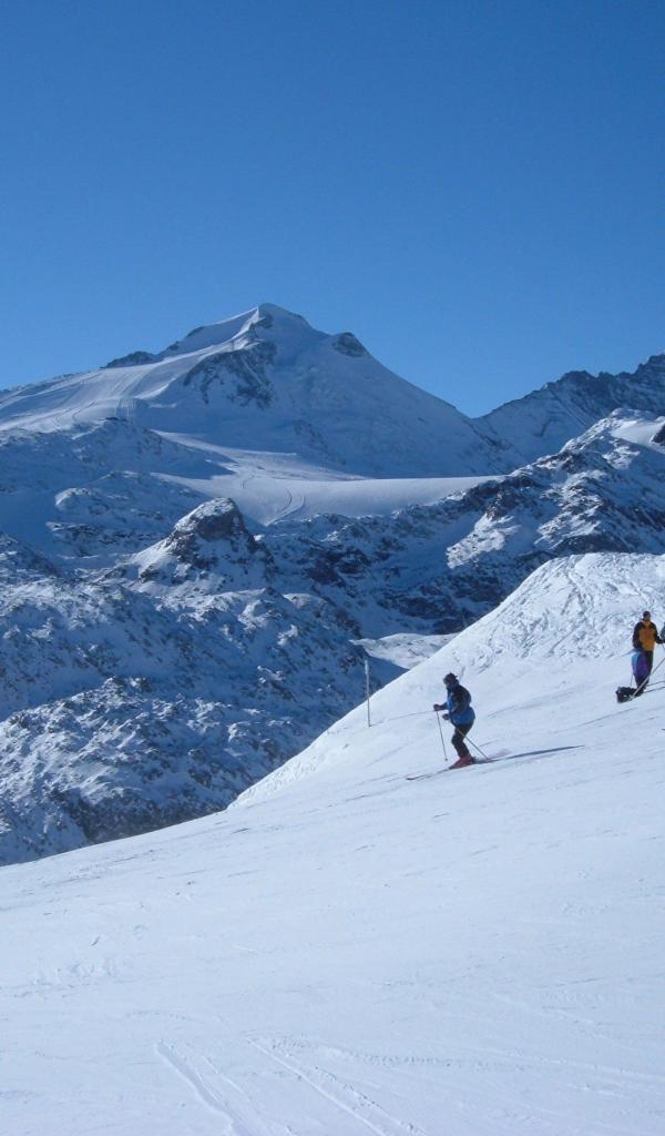 Обои Спуск на лыжах на горнолыжном курорте Кортина д`Ампеццо, Италия