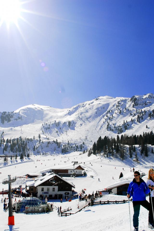 Обои Катание на лыжах на горнолыжном курорте Кортина д`Ампеццо, Италия