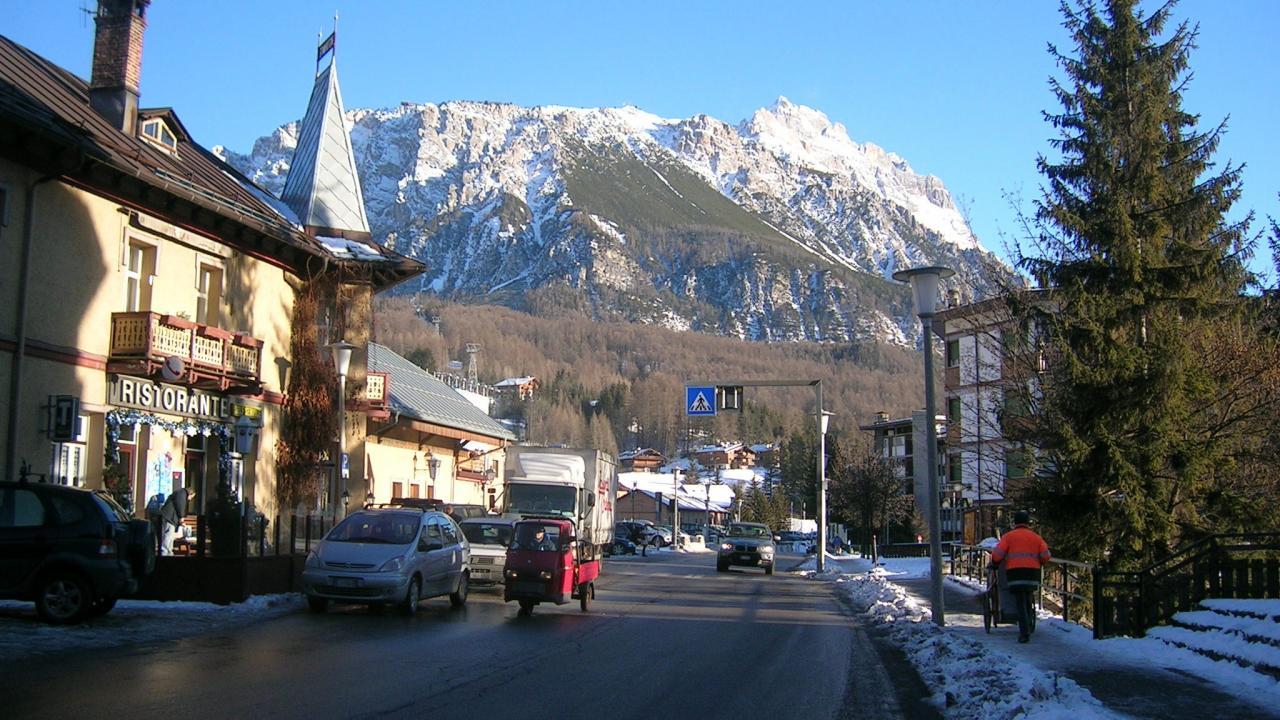 Обои Городская улица на горнолыжном курорте Кортина д`Ампеццо, Италия