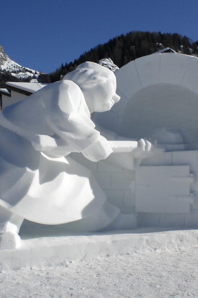 Обои Снежная скульптура на горнолыжном курорте Валь-Ди-Фасса, Италия