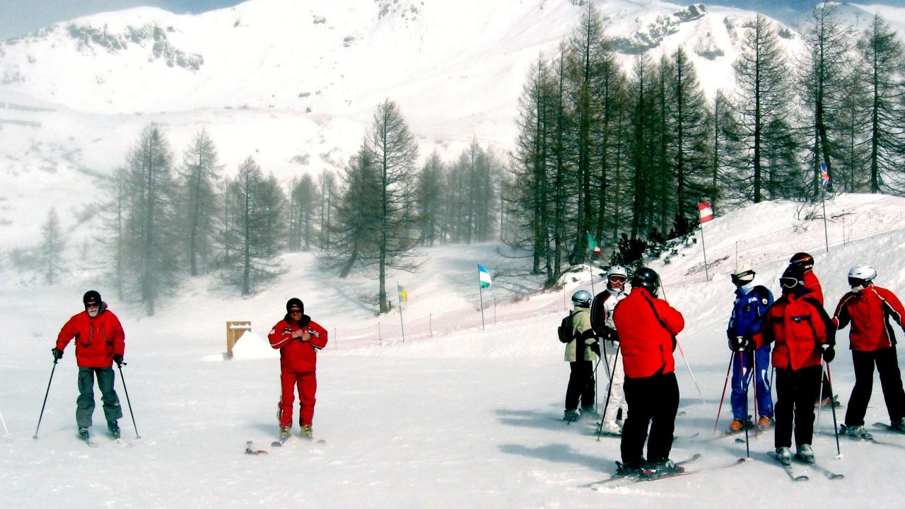 Обои Катание на лыжах на горнолыжном курорте Валь-Ди-Фасса, Италия