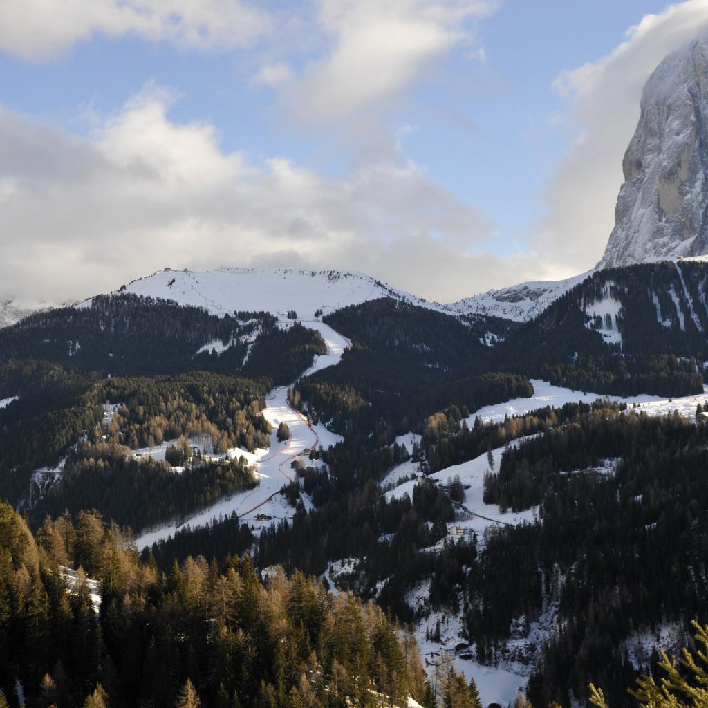 Обои Трасса для слалома на горнолыжном курорте Валь Гардена, Италия