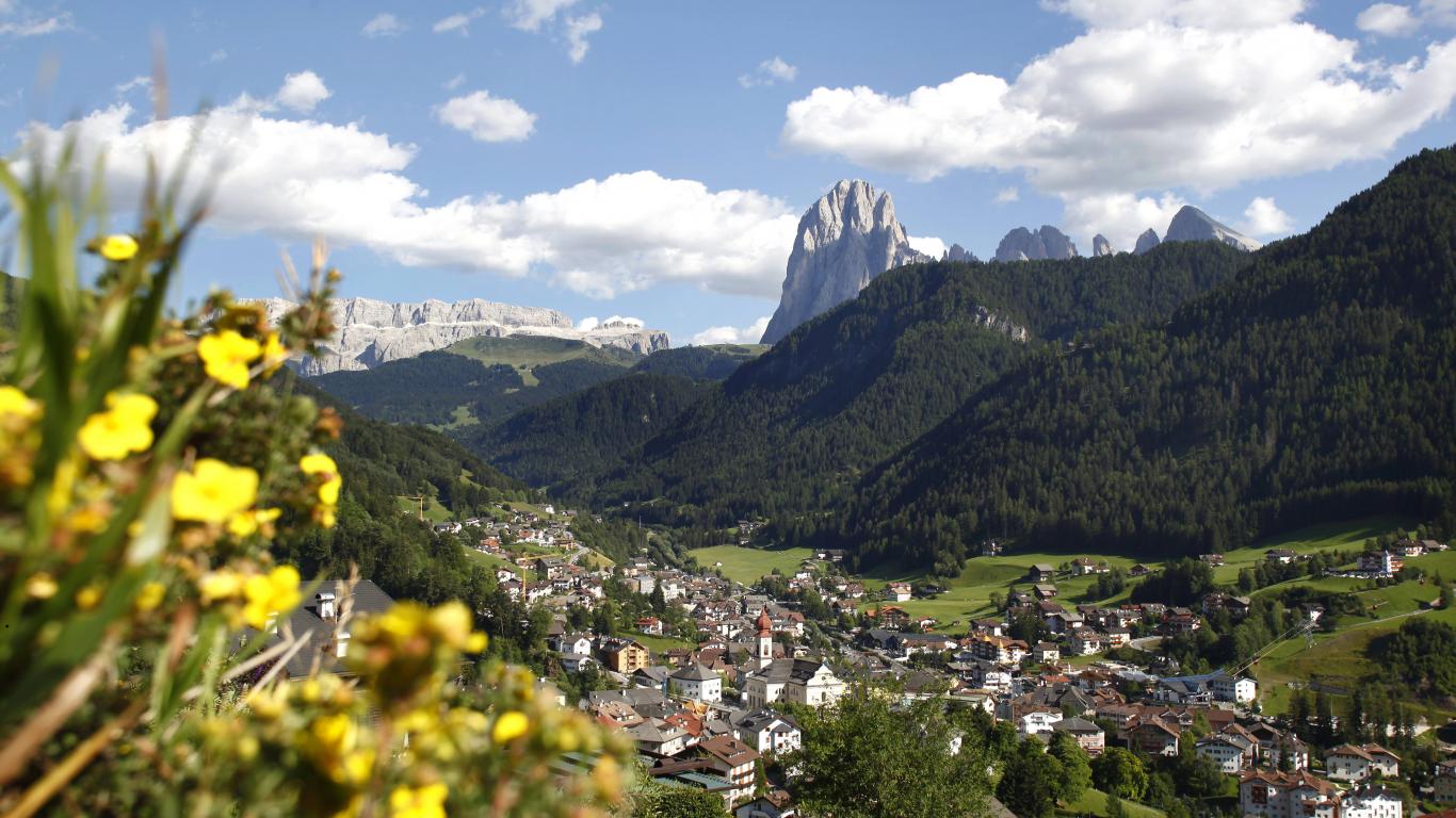 Обои Цветы в горах на горнолыжном курорте Валь Гардена, Италия