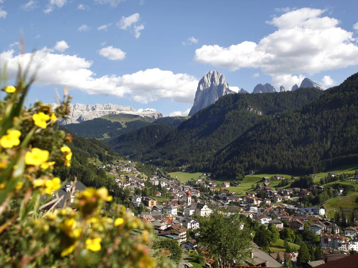 Обои Цветы в горах на горнолыжном курорте Валь Гардена, Италия
