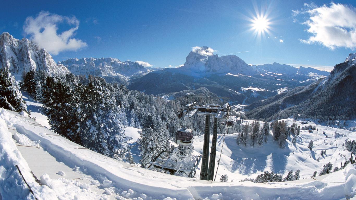 Обои Подъемник на горнолыжном курорте Валь Гардена, Италия