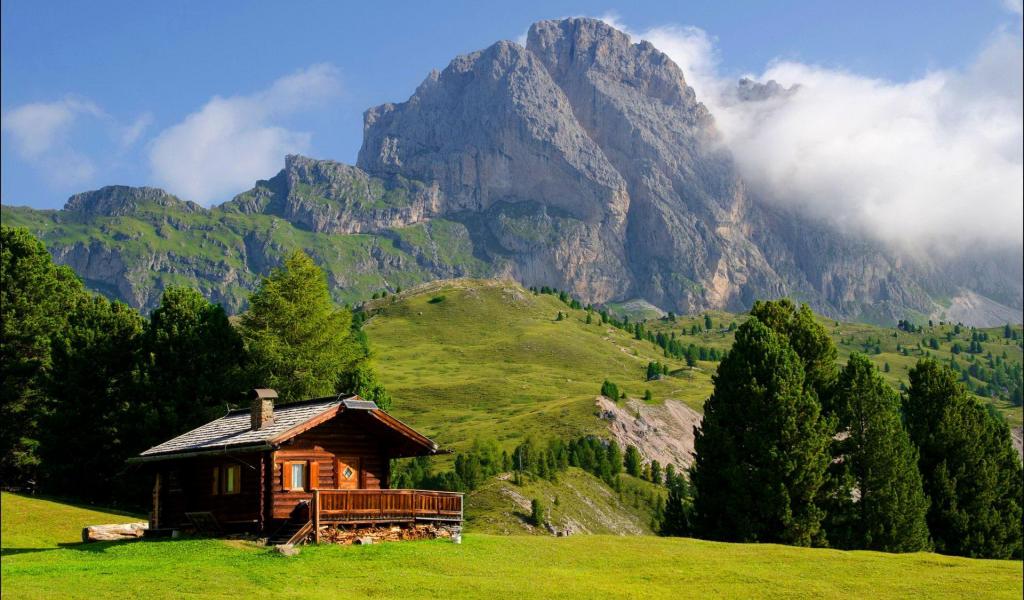 Обои Одинокий дом на горнолыжном курорте Валь Гардена, Италия