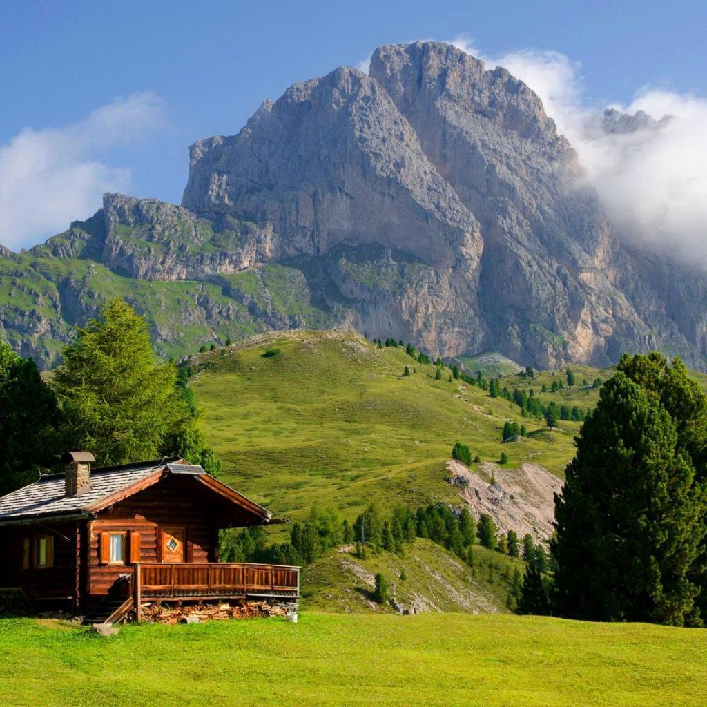 Обои Одинокий дом на горнолыжном курорте Валь Гардена, Италия