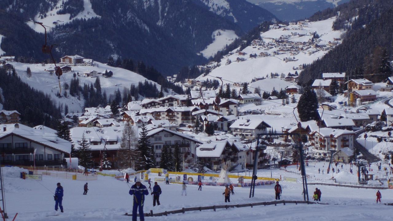 Обои Катание на лыжах на горнолыжном курорте Валь Гардена, Италия