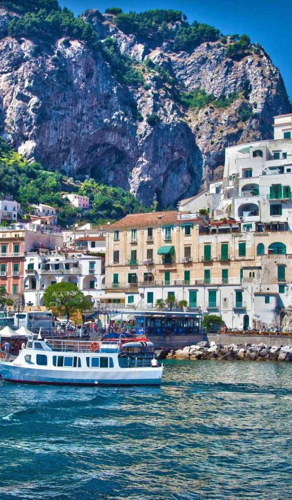 Обои У причала на курорте в Амальфи, Италия