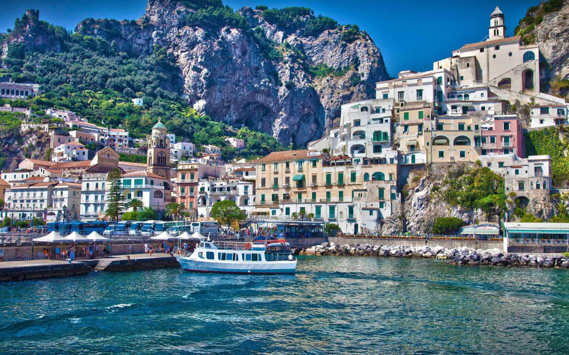 Обои У причала на курорте в Амальфи, Италия