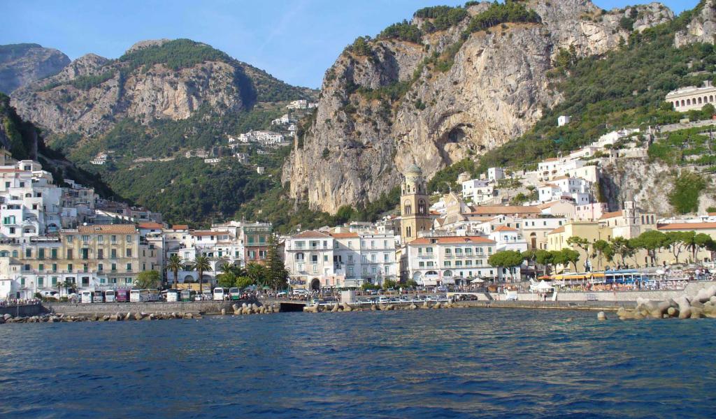 Обои Причал на курорте в Амальфи, Италия