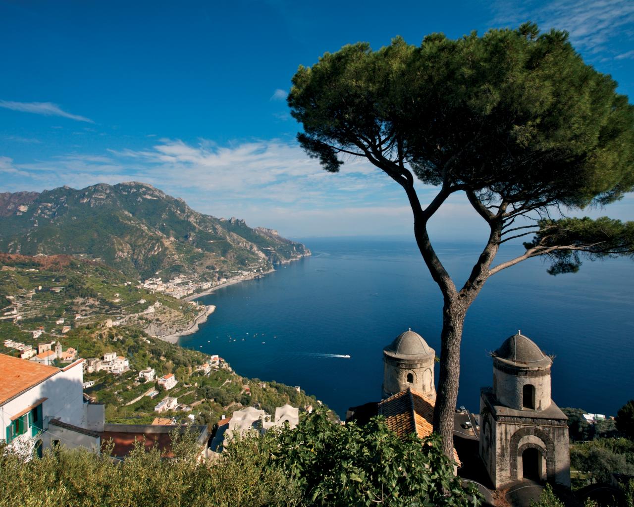 Обои Дерево над городом на курорте в Амальфи, Италия