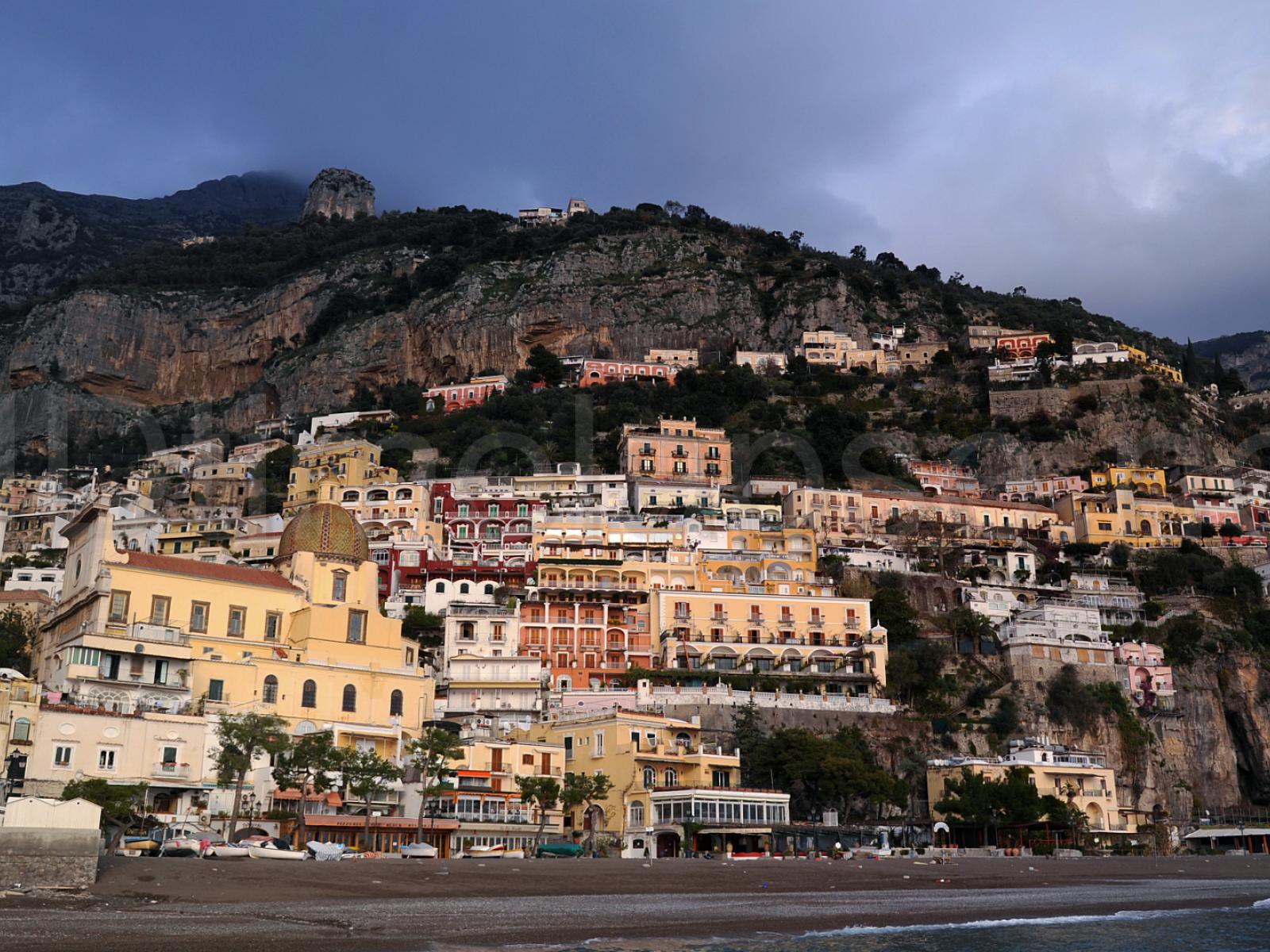 Обои Дома на скале на курорте в Амальфи, Италия