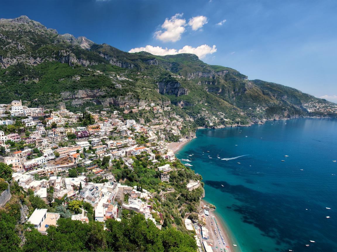 Обои Голубая лагуна у побережья на курорте в Амальфи, Италия
