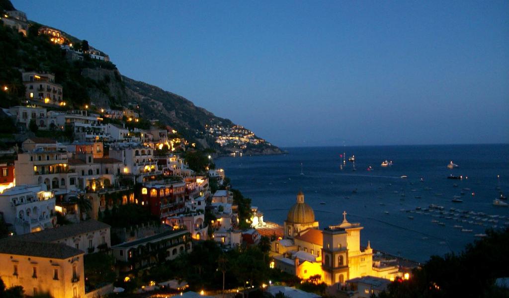 Обои Вечерние огни на курорте в Амальфи, Италия