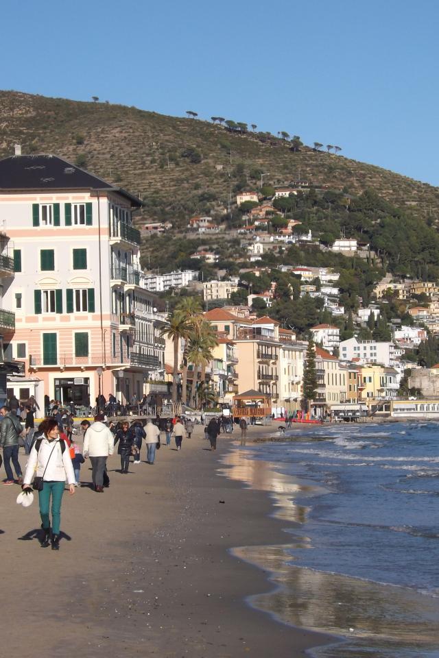 Обои Осенний отдых на пляже на курорте Алассио, Италия